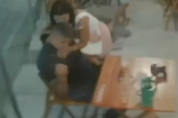 As imagens mostram o policial penal sentado, acompanhado de uma mulher. Ele aparece sacando uma arma da na cintura e atira um disparo para cima dentro do bar. Clientes e funcionários ficam assustados.