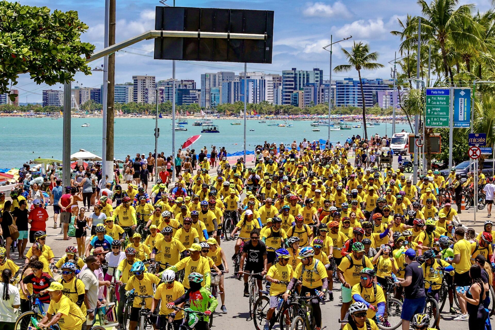 Ciclistas percorreram 10km entre os bairros Pontal da Barra e Jatiúca, em Maceió