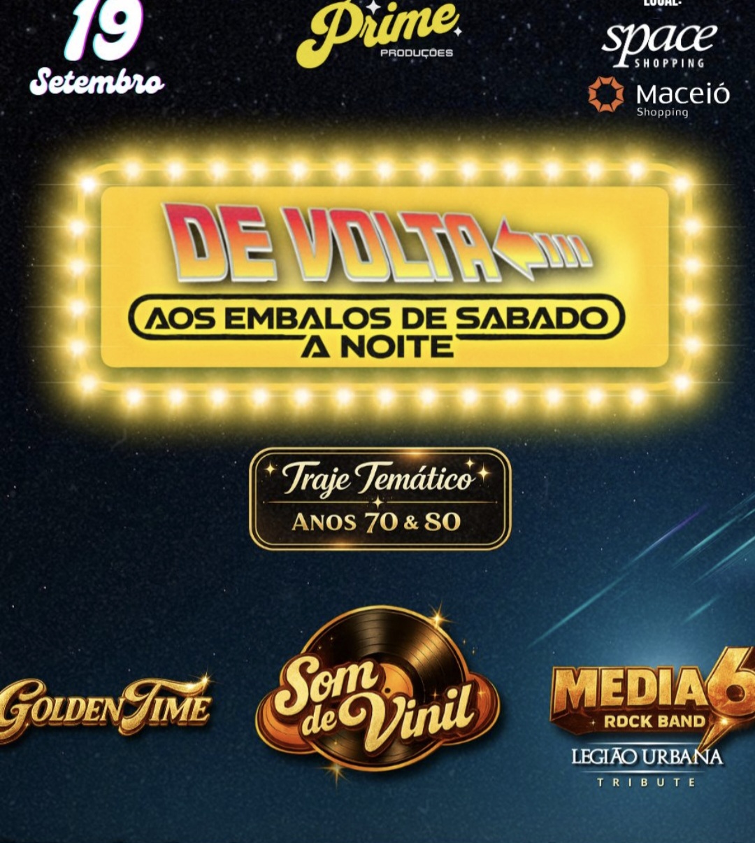 A festa acontece no dia 27 de setembro, no Space Shopping, no Maceió Shopping, e promete uma experiência imersiva inspirada nas grandes pistas de dança das décadas de 70 e 80 — com cenografia temática, ambientação retrô e público caracterizado.