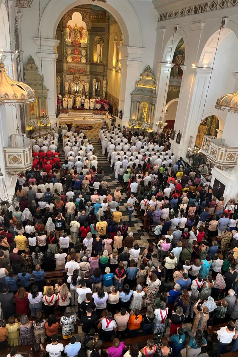 “A procissão não é uma caminhada qualquer, é um ato religioso, uma peregrinação, sobretudo neste ano jubilar. Venham com espírito de oração, não de conversa. Não se brinca, não se troca ideia, não se acessa o celular. Participemos da procissão, mas cantando, rezando e louvando a Deus.”