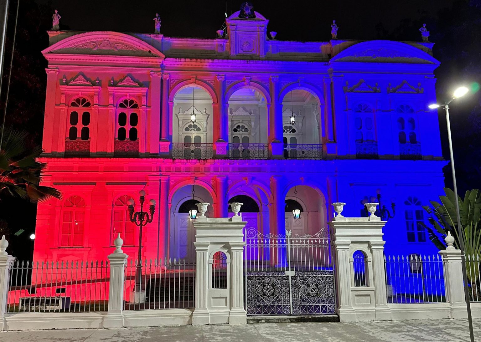 Quem passar à noite em frente ao Palácio dos Martírios, no Centro de Maceió, vai se deparar com a fachada da sede histórica iluminada nas cores azul, branco e vermelho das bandeirasde Alagoas e da França. A inciativa é uma homenagem do Governo do Estado, por meio das secretarias de Estado de Relações Internacionais (Serfi), Planejamento e Gestão (Seplag) e Cultura (Secult), à parceria entre Alagoas e a França, nestes 200 anos de relação internacional do país europeu com o Brasil.
