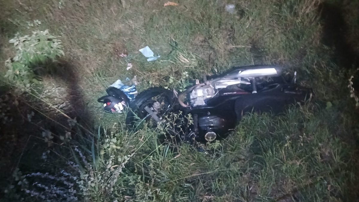 Moto perdeu o controle em uma curva e saiu da pista; vítima foi socorrida pelo Samu