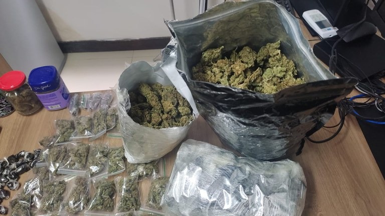 Durante as diligências, foram apreendidos aproximadamente dois quilos de substância análoga à maconha, haxixe, dois aparelhos celulares, duas balanças de precisão e a quantia de R$ 1.000 em espécie. Todo o material recolhido será periciado e integrado às investigações em andamento.