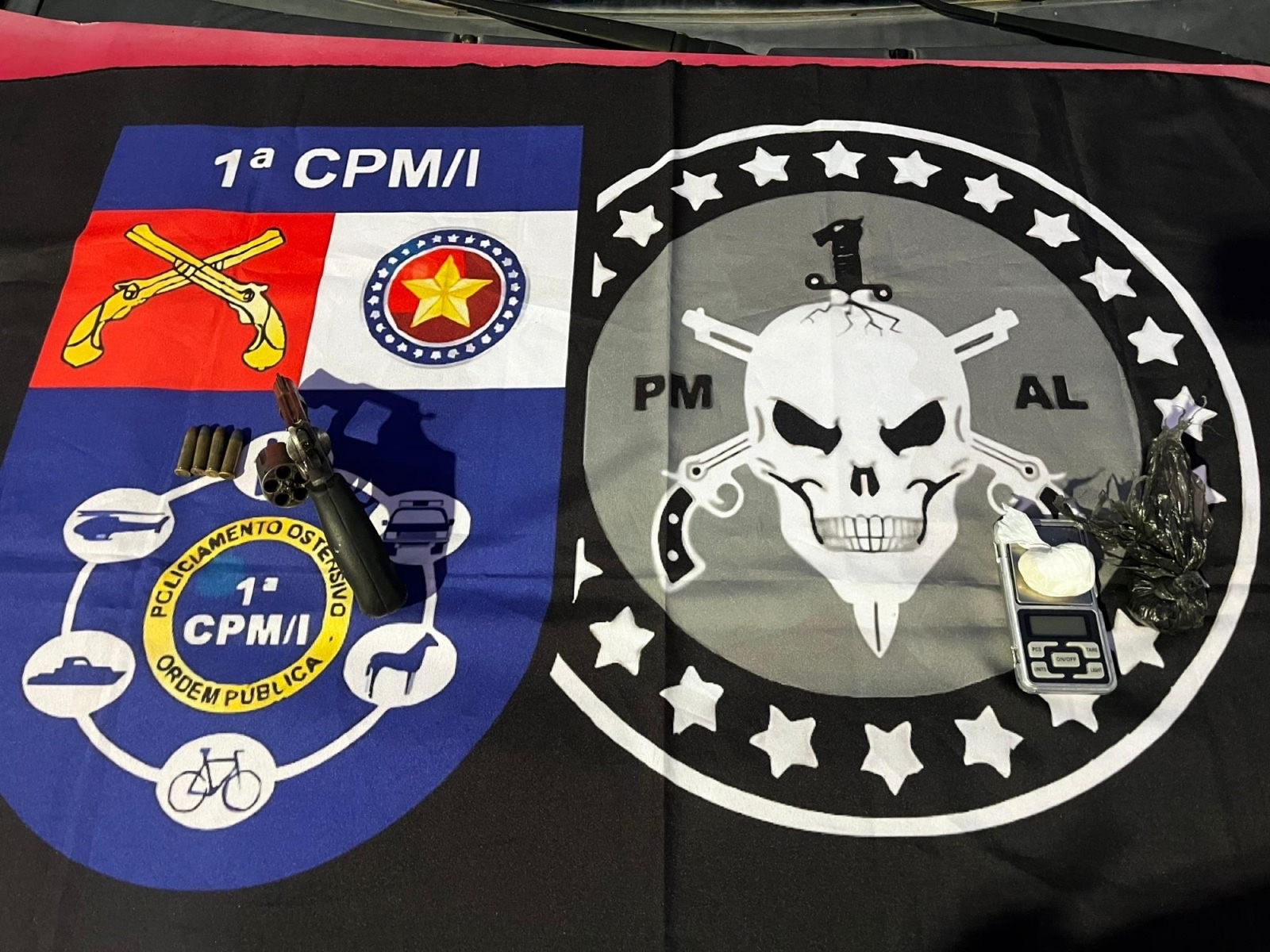 Com o alvo, foram encontrados um revólver calibre .38 com quatro munições, além de porções de maconha (19 g) e crack (12 g). O indivíduo foi conduzido à 6ª Delegacia Regional, em São Miguel dos Campos, onde permaneceu preso à disposição da Justiça.