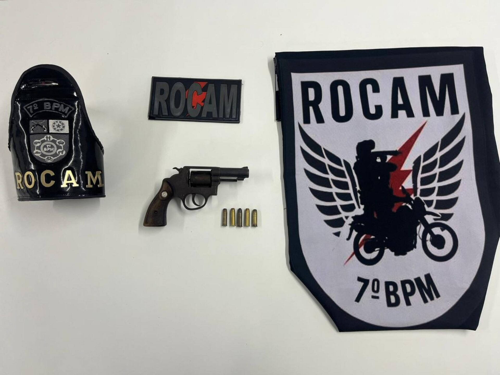 O fato ocorreu perto das 21h, em um sítio na localidade Areias, na zona rural da cidade. A guarnição de Rondas Ostensiva Com Apoio de Motocicletas (Rocam) do 7º Batalhão de Polícia Militar (BPM) foi acionada para averiguar a denúncia. No momento em que se aproximava do endereço indicado, a equipe observou quando o indivíduo tentou se desfazer de um armamento que estava em sua cintura. Ele foi abordado e, diante do flagrante, foi preso.