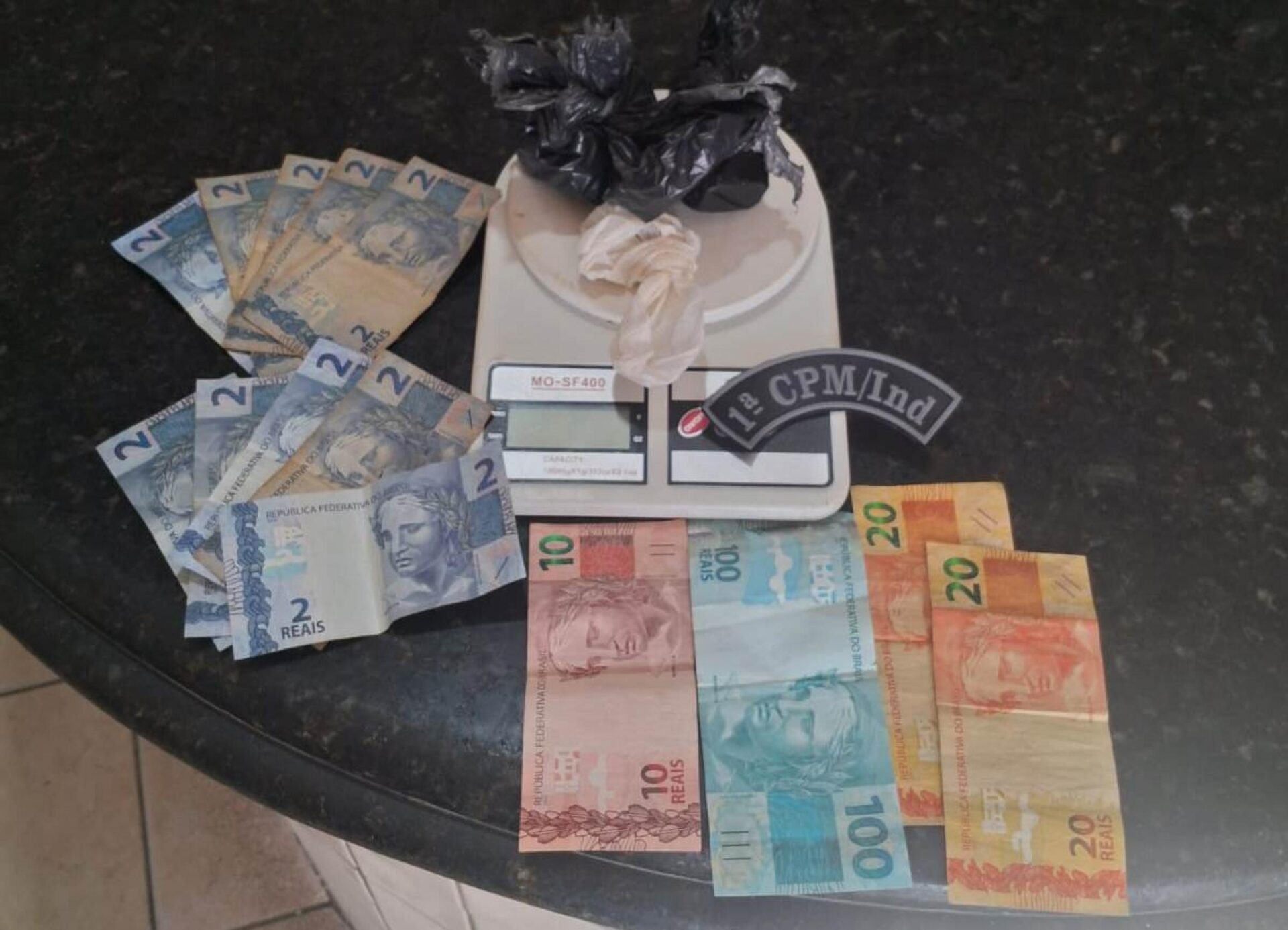Ao realizar uma varredura no local onde o grupo estava reunido, os policiais encontraram uma balança de precisão, 100 g de maconha e a quantia de R$ 170. Ao receber voz de prisão, o autor proferiu uma série de ofensas, em tom de ameaça, direcionadas aos agentes.