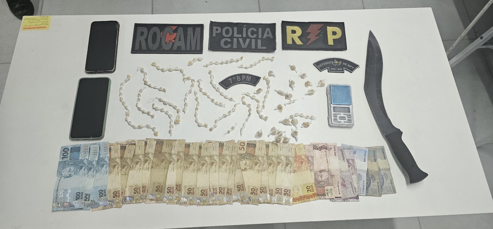Diante do flagrante, os policiais deram início à busca domiciliar, constatando maus-tratos aos animais, além de encontrarem uma bolsa com drogas, uma balança de precisão e R$ 1.500.