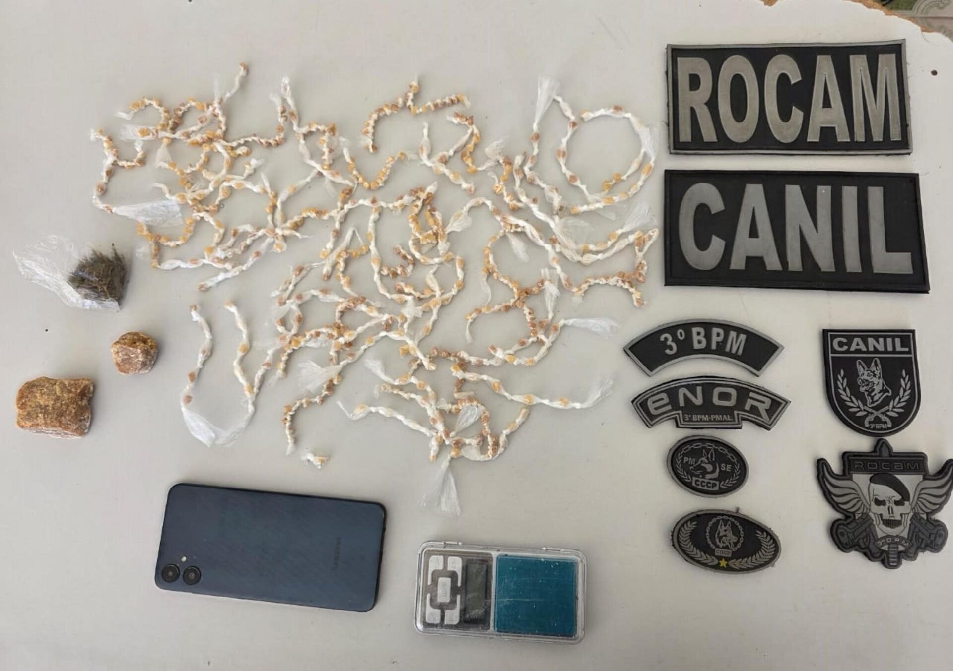 Em Arapiraca, a guarnição de Rocam (Rondas Ostensivas com Apoio de Motocicletas) do 3º Batalhão de Polícia Militar (BPM) aprendeu: 513 pedras fracionadas de substância crack (70 gramas), duas pedras de substância análoga a crack (57 gramas), uma balança de precisão, um celular e três rolos de plástico filme. O fato ocorreu durante a manhã de quarta-feira (23), no bairro Brasília. Foram presos dois indivíduos do sexo masculino com 19 e 20 anos.
