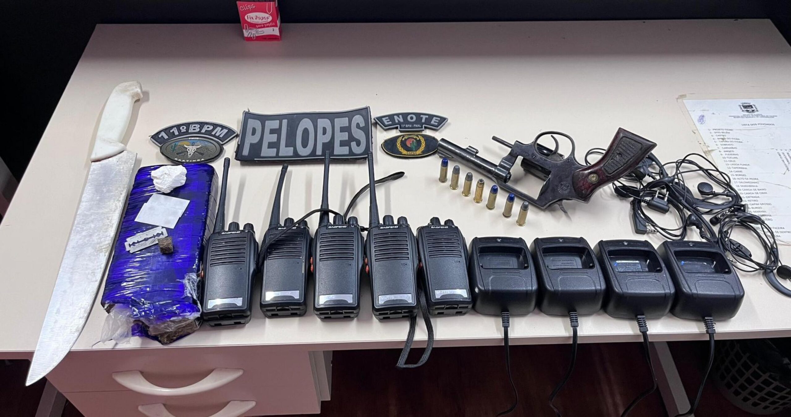 Ao ser indagada, a proprietária assumiu a prática e entregou os ilícitos aos policiais. No total, foram apreendidos um quilo de maconha, 20 gramas de cocaína e cinco rádios comunicadores. Diante do flagrante, os suspeitos foram levados à delegacia para a realização dos procedimentos legais.