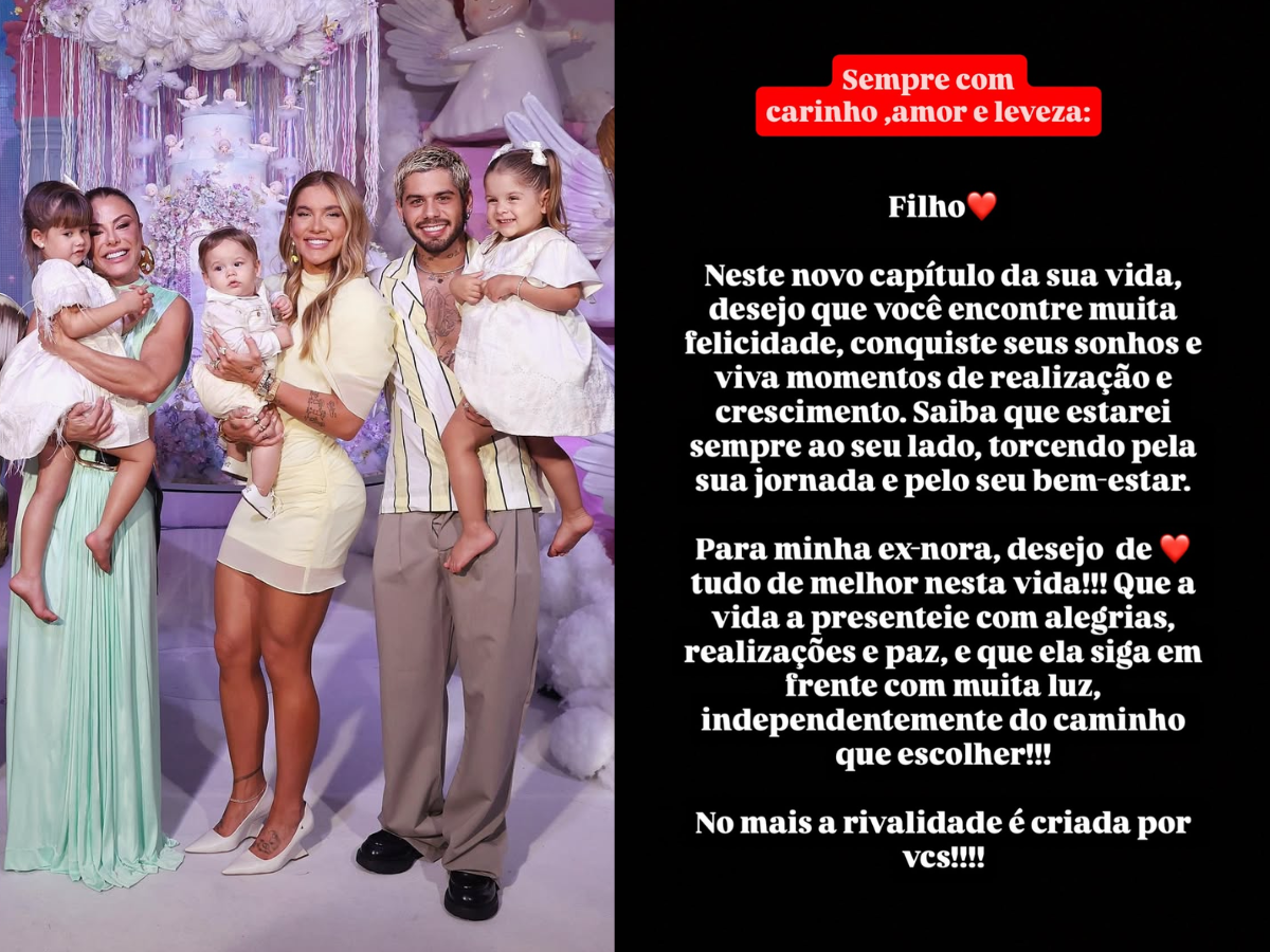 Poliana ainda mandou um recado para a mãe de seus netos, Virginia: “Para minha ex-nora, desejo de coração tudo de melhor nesta vida! Que a vida a presenteie com alegrias, realizações e paz, e que ela siga em frente com muita luz, independente do caminho que escolher”, disse ela.