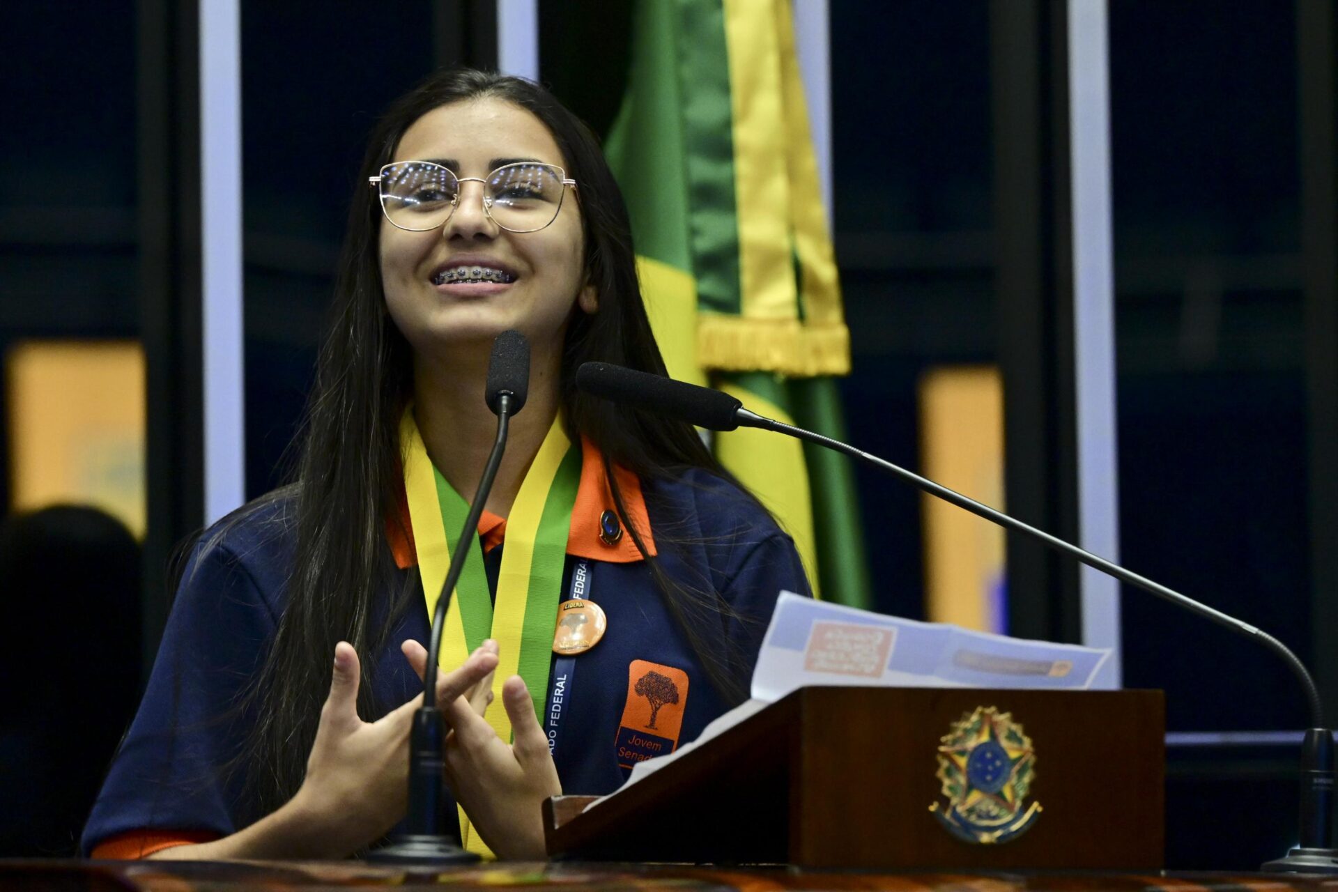 Aluna da Escola Estadual Delmo Ferreira da Silva, de Jundiá, Darliane Lima foi a Jovem Senadora de 2025 e relembra sua participação.
