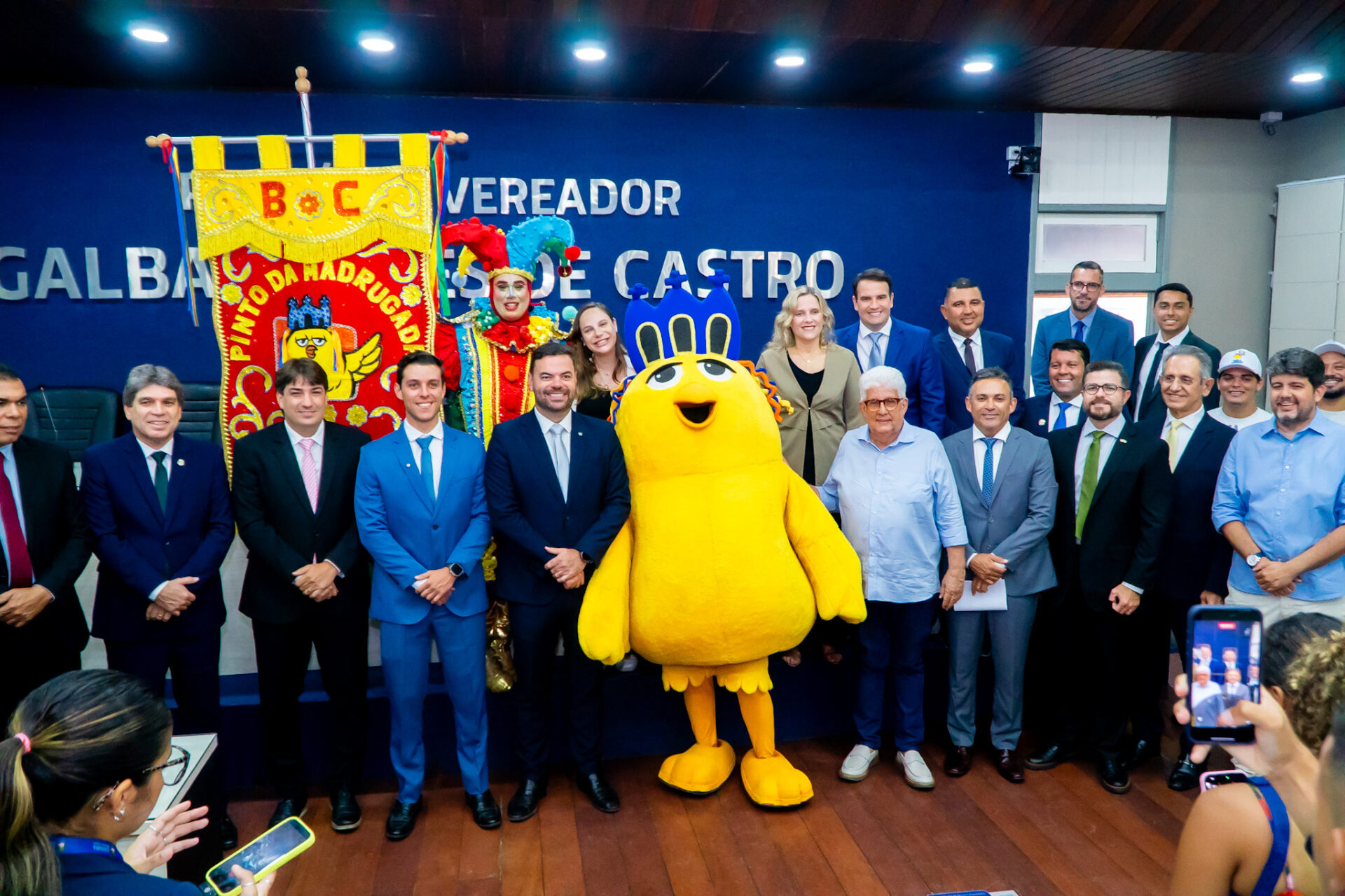 O mascote esteve em plenário, a banda tocou marchinhas de Carnaval, e um dos fundadores do bloco, Hermann Braga, aproveitou a oportunidade para convidar os servidores, parlamentares e a população para comparecer neste sábado (7), a partir das 7h, na orla de Pajuçara para conferir o desfile do tradicional bloco carnavalesco.