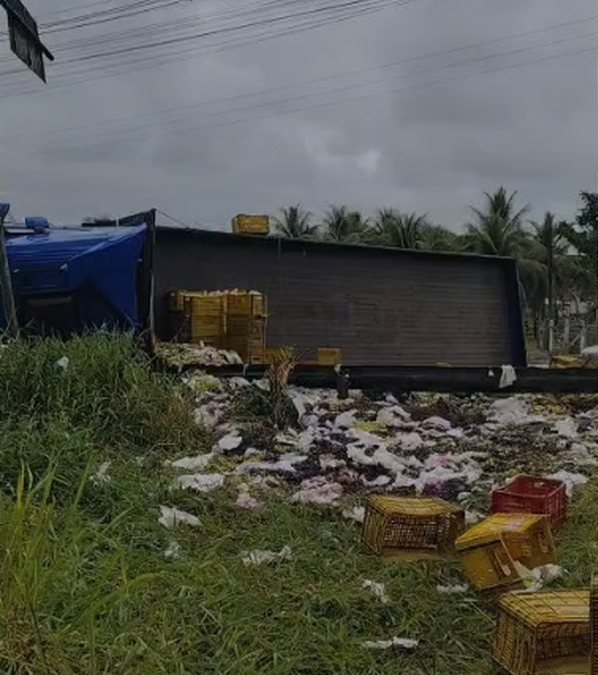 Uma carreta carregada de frutas e verduras tombou na manhã desta quinta-feira (9) na Ladeira do Catolé, trecho da BR-316, no município de Satuba, Região Metropolitana de Maceió. Ainda não há informações sobre a dinâmica do acidente nem sobre o número de vítimas.