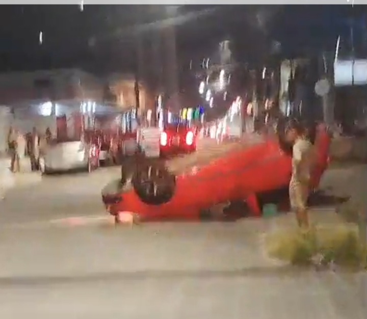 Um carro capotou na noite dessa sexta-feira (02), no bairro do Jatiúca, capital alagoana. Não há informações de feridos.