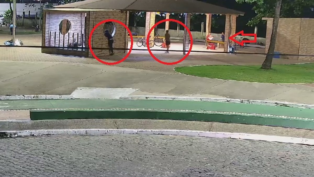 As cenas captadas pelas câmeras mostram claramente a ação criminosa. Os suspeitos se aproximam das vítimas, que estavam sentadas em um banco, entre bicicletas e mochilas de delivery. Matheus ainda tenta correr, mas cai após alguns metros e é executado pelos dois homens.