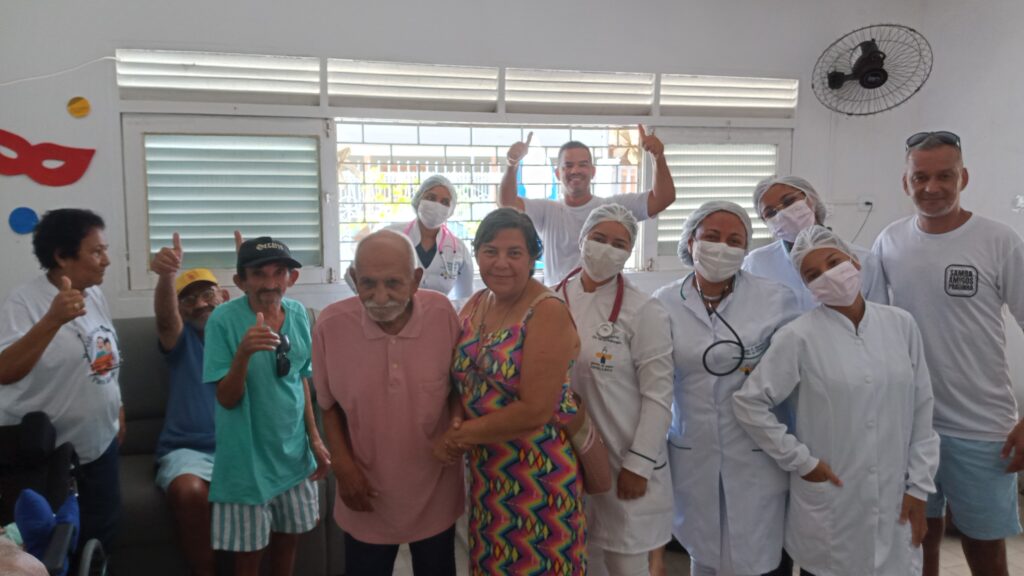 O espaço que abriga idosos está localizado no bairro da Ponta Grossa, em Maceió. Os músicos Eduardo Sobral e Márcio Poroganba levaram as doações arrecadadas na última edição do projeto e cantaram algumas músicas com os moradores do local.