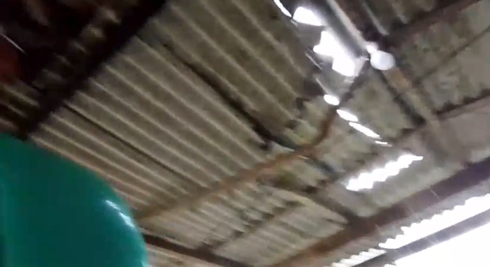 Segundo a moradora do local, o relatou raio caiu na estrutura do telhado e quebrou parte da cobertura. No momento, ela estava na cozinha e não se feriu.